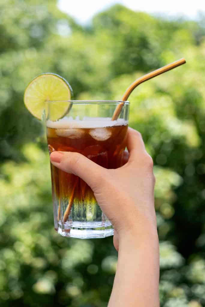 Mehet a pohárba a hideg tonic néhány jégkocka kíséretében, rá pedig a hideg kávé, egy lime karika és indulhat is a frissítő kávézás!