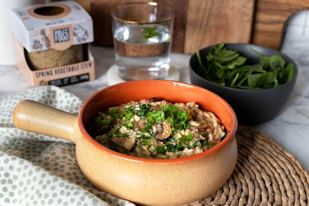 Tavasszal ünnepeltük 6. születésnapunkat, ebből az alkalomból debütált 2 új vegán ízünk, a Bolognai ragu tofuval és a Tárkonyos zöldségragu gombával, ami a vegán POLCZ készételek között a második kevdencetek lett! Ezen mondjuk nem csodálkozunk, mert amióta nekikezdtünk a próbafőzéseknek, nálunk is óriási kedvenc. Magában, körettel vagy éppen recept alapanyagként is isteni, ha még nem tettétek, próbáljátok ki zöldséges-gombás rizottóként, garantáltan nem fogjátok megbánni!