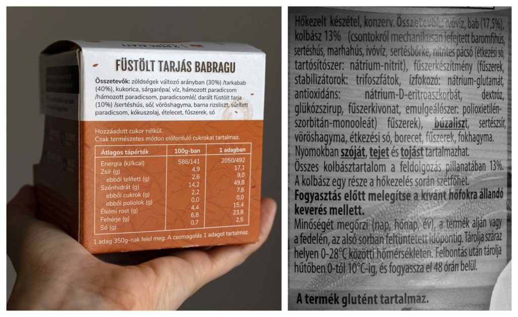 - a második helyen a Füstölt tarjás babragunk végzett a maga 72%-os tartalmával (szintén szósz nélkül), míg ellenfele 65%-ot ért el