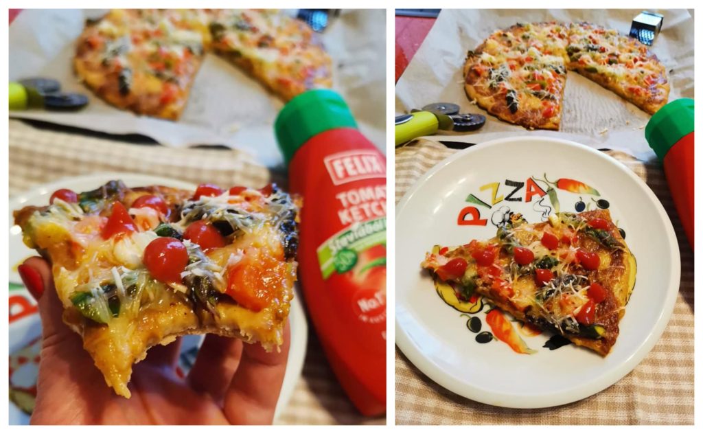 ,,Ha már kinyitottam az ebédhez a pecsenye krémet és maradt egy kevés párolt spárga is, gondoltam vacsorára sütök egy zöldséges pizzát Zelleitündi gluténmentes csökkentett szénhidráttartalmú általános lisztkeverékből.