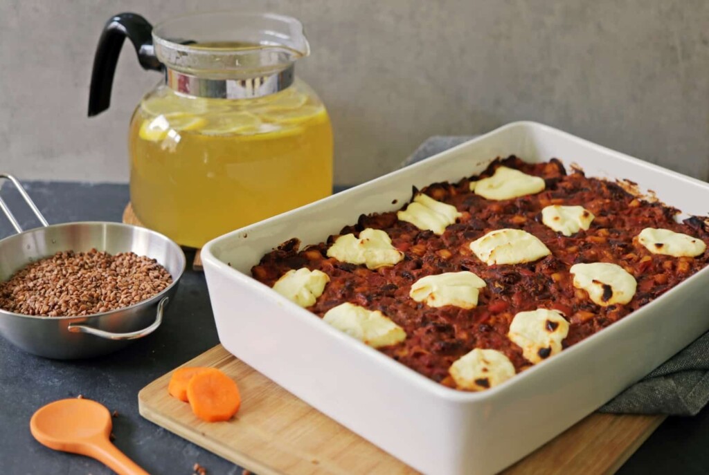 A hajdina egy szuper egészséges, gluténmentes alternatív gabonaféle, mely karakteres ízével remekül illik a mexikói konyha ízvilágába. Először is főzzük meg a megmosott hajdinát kétszeres mennyiségű, sós vízben kb 15 percig. Mialatt elkészül, hámozzuk meg és szeleteljük fel a sárgarépákat, majd karikákra vágva ugyancsak puhítsuk meg forrásban lévő vízben néhány perc alatt. A répa édessége és a hajdina mogyorós aromája tökéletes párost alkotnak, de ha valaki nem kedveli ezt a különleges ízt, nyugodtan helyettesítheti a semlegesebb bulgurral. A főtt hajdinát keverjük össze a répakarikákkal és terítsük szét egy sütőtálban, majd kanalazzuk a tetejére az enyhén csípős Mexikói zöldségragut. Kenjük meg krémes tejföllel, hogy jó szaftos legyen és 200 fokon süssük 20 percig, amíg megpirul a teteje.
